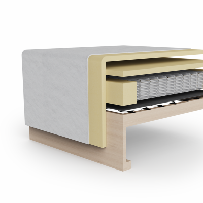 The combination of a solid wood frame with no-zag and pocket springs with a hyper soft foam on top create a unique softness in seating as well as sleeping position. The use of no-zag spring contributes to an extra layer of elasticity and allows the mattress to breathe.